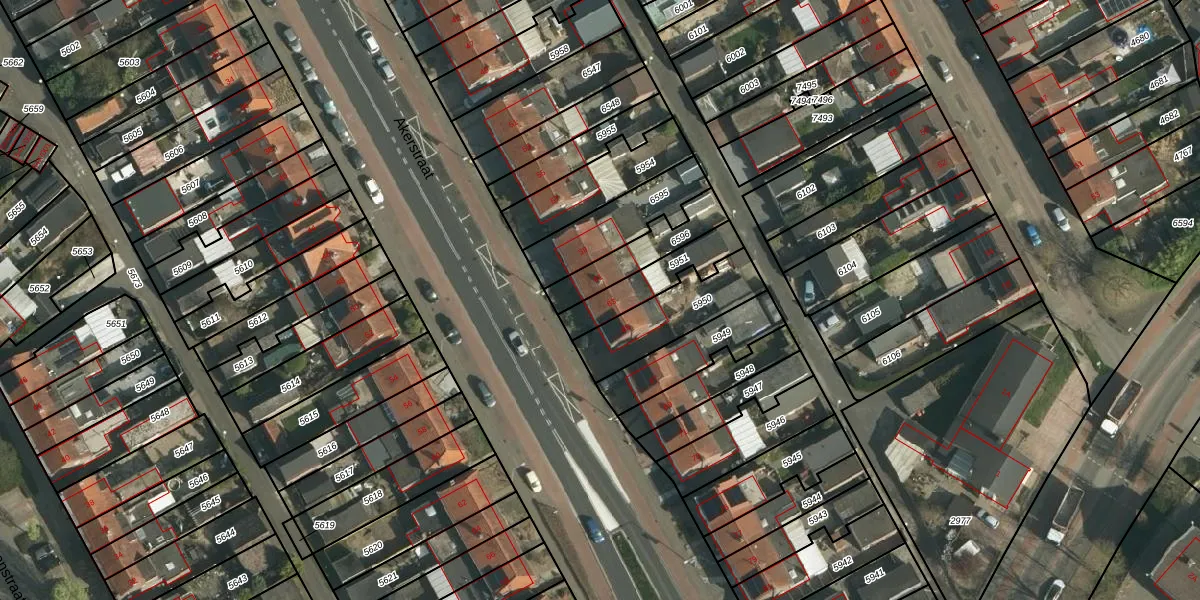 Gebruik de zoekbalk of klik op een perceel voor informatie over de adressen binnen dit perceel.
