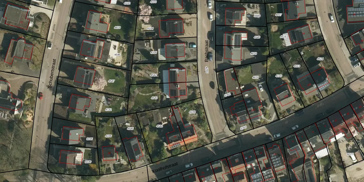 Gebruik de zoekbalk of klik op een perceel voor informatie over de adressen binnen dit perceel.