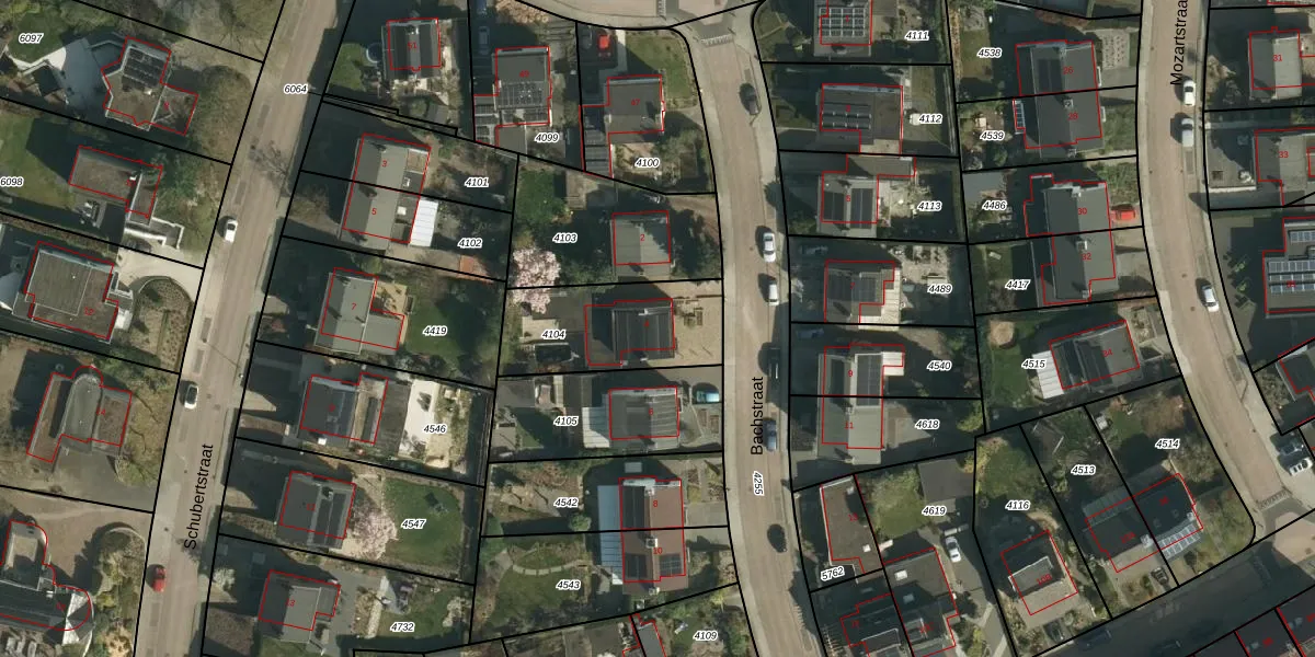 Het perceel waarop Bachstraat 4 staat heeft een oppervlakte van 450 m². Dit is een groot perceel. De perceeloppervlakte wordt geregistreerd door het Kadaster. Gedetailleerde informatie over de maten van dit perceel kunt u vinden in het rapport Kadastrale kaart met maatvoering van Bachstraat 4.