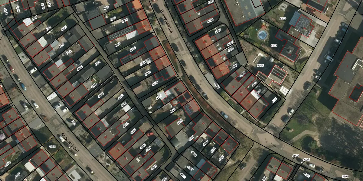 Gebruik de zoekbalk of klik op een perceel voor informatie over de adressen binnen dit perceel.