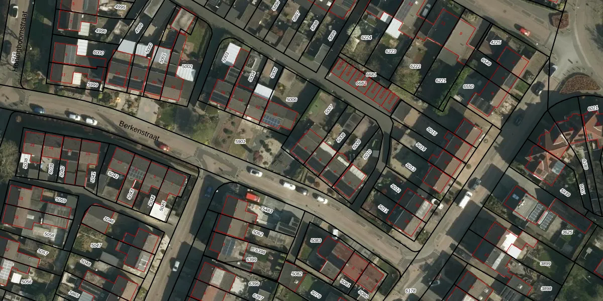 Gebruik de zoekbalk of klik op een perceel voor informatie over de adressen binnen dit perceel.