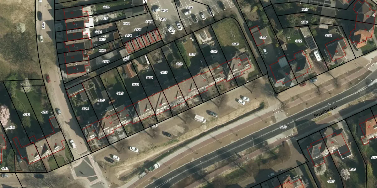 Gebruik de zoekbalk of klik op een perceel voor informatie over de adressen binnen dit perceel.