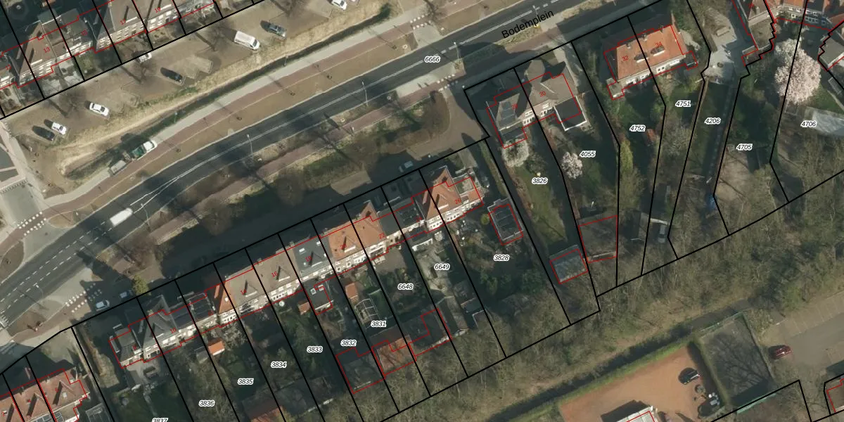 Het perceel waarop Bodemplein 24 staat heeft een oppervlakte van 489 m². Dit is een groot perceel. De perceeloppervlakte wordt geregistreerd door het Kadaster. Gedetailleerde informatie over de maten van dit perceel kunt u vinden in het rapport Kadastrale kaart met maatvoering van Bodemplein 24.