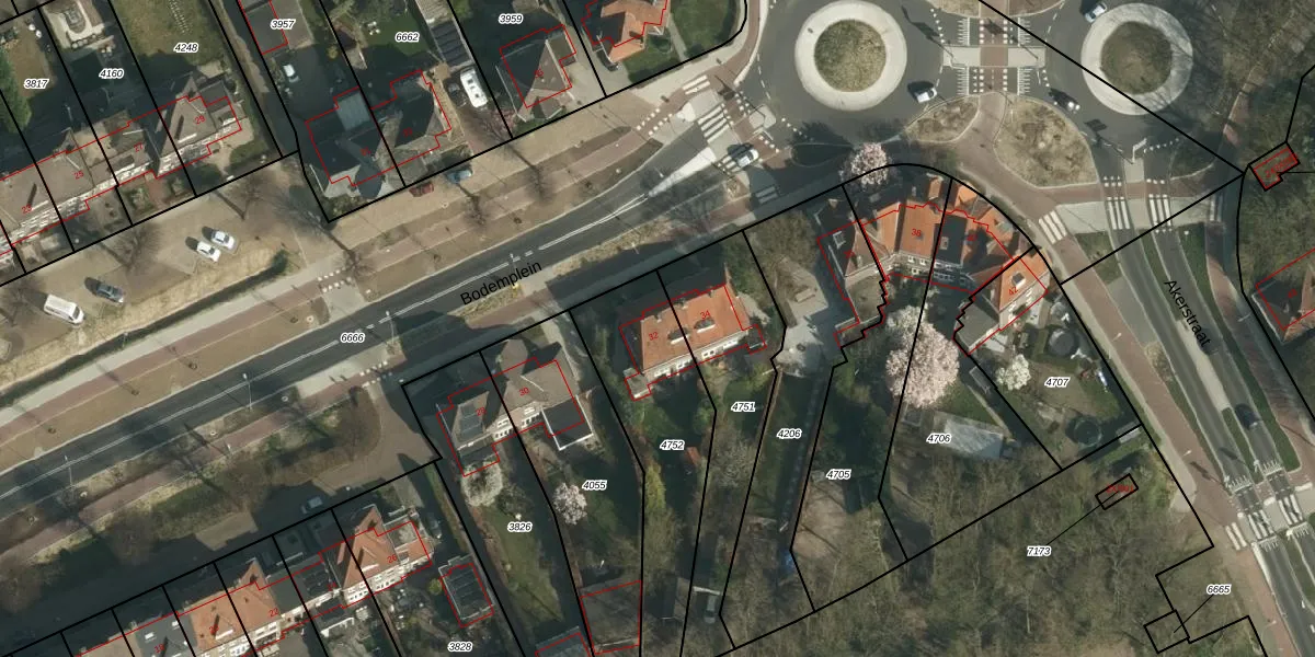 Het perceel waarop Bodemplein 32 staat heeft een oppervlakte van 650 m². Dit is een groot perceel. De perceeloppervlakte wordt geregistreerd door het Kadaster. Gedetailleerde informatie over de maten van dit perceel kunt u vinden in het rapport Kadastrale kaart met maatvoering van Bodemplein 32.