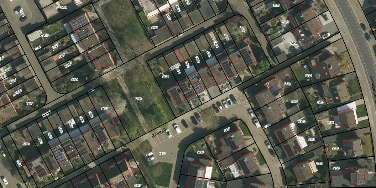 Bolderik 14 is gelegen op kadastraal perceel BSM02C5600. Deze kadastrale aanduiding is uniek en wordt gebruikt door het Kadaster om eigendomsrechten en andere zakelijke rechten vast te leggen. Het perceel maakt onderdeel uit van de kadastrale gemeente Brunssum.
