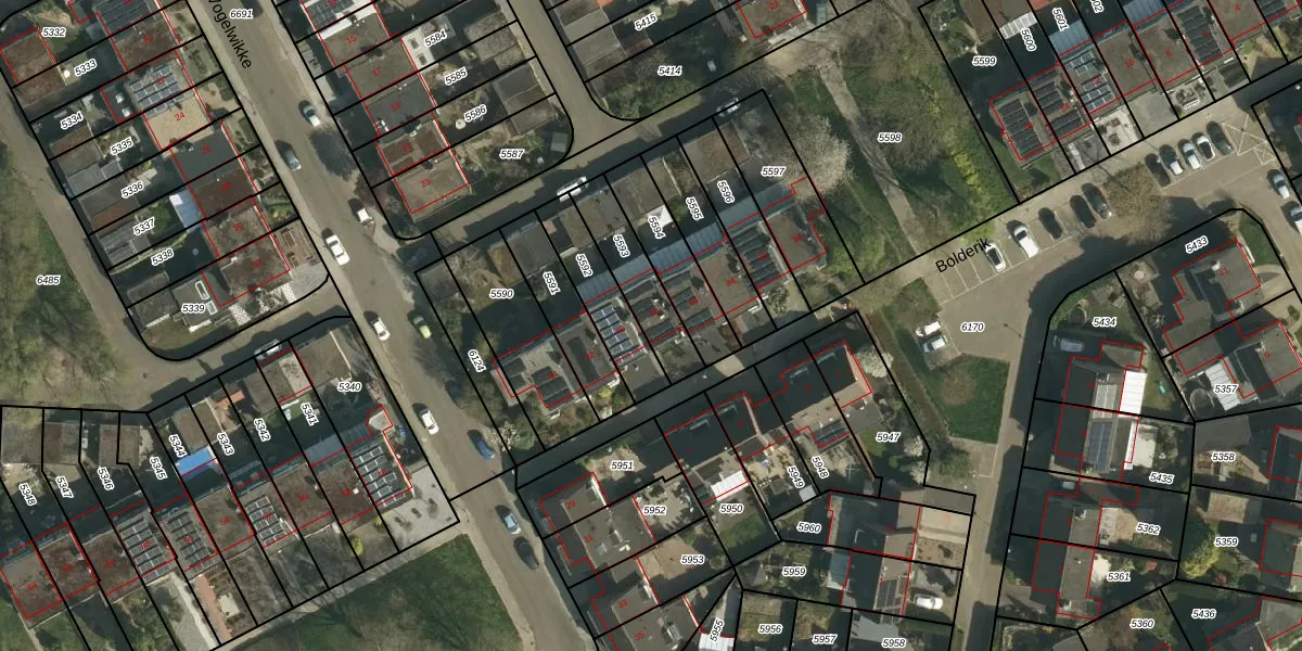 Het perceel waarop Bolderik 38 staat heeft een oppervlakte van 208 m². Dit is een middelgroot perceel. De perceeloppervlakte wordt geregistreerd door het Kadaster. Gedetailleerde informatie over de maten van dit perceel kunt u vinden in het rapport Kadastrale kaart met maatvoering van Bolderik 38.