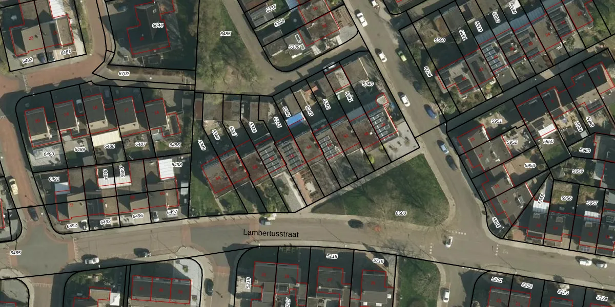 Gebruik de zoekbalk of klik op een perceel voor informatie over de adressen binnen dit perceel.