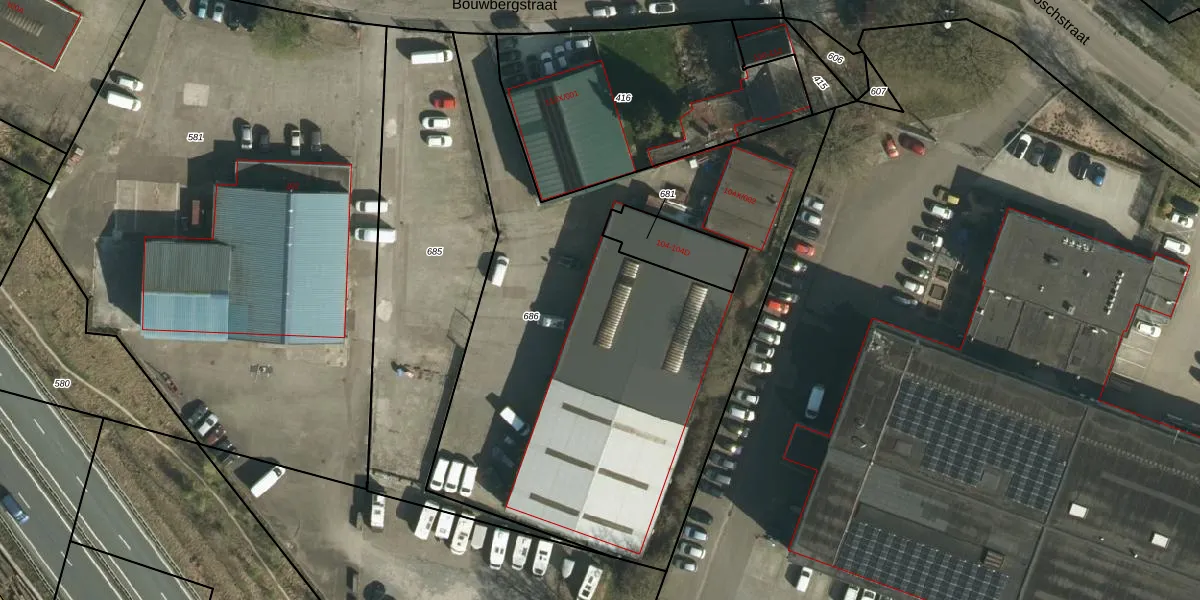 Het perceel waarop Bouwbergstraat 104-C staat heeft een oppervlakte van 2944 m². Dit is een zeer groot perceel. De perceeloppervlakte wordt geregistreerd door het Kadaster. Gedetailleerde informatie over de maten van dit perceel kunt u vinden in het rapport Kadastrale kaart met maatvoering van Bouwbergstraat 104-C.