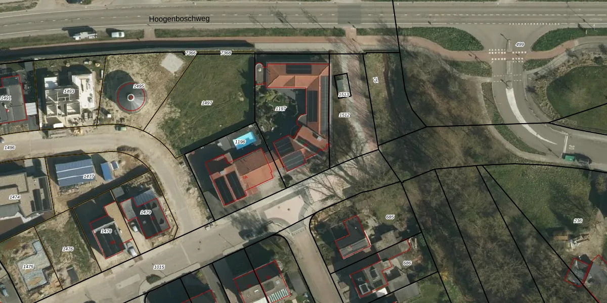 Gebruik de zoekbalk of klik op een perceel voor informatie over de adressen binnen dit perceel.