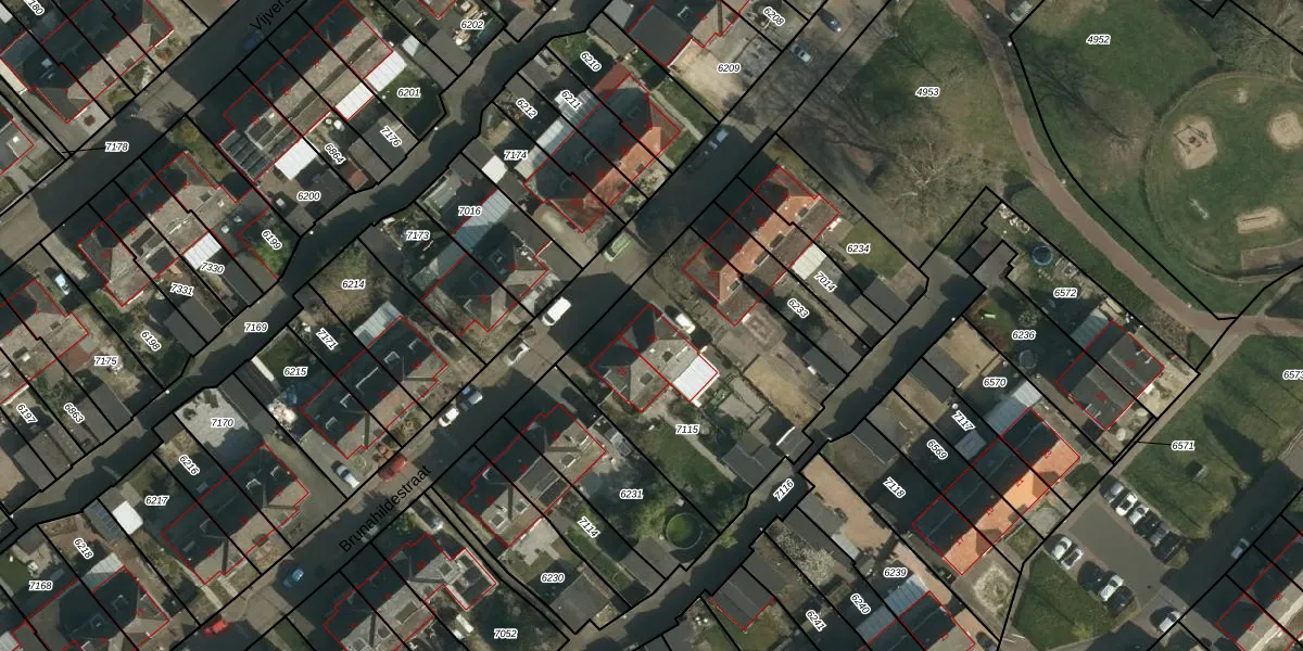 Het perceel waarop Brunahildestraat 20 staat heeft een oppervlakte van 1073 m². Dit is een zeer groot perceel. De perceeloppervlakte wordt geregistreerd door het Kadaster. Gedetailleerde informatie over de maten van dit perceel kunt u vinden in het rapport Kadastrale kaart met maatvoering van Brunahildestraat 20.