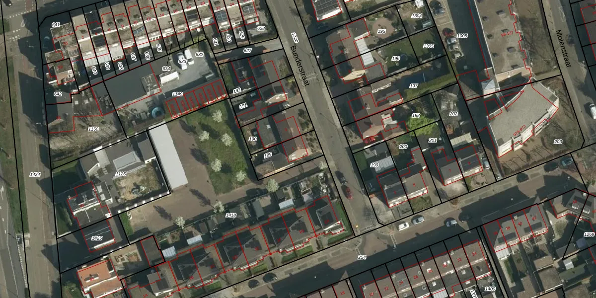 Het perceel waarop Bunderstraat 1 staat heeft een oppervlakte van 212 m². Dit is een middelgroot perceel. De perceeloppervlakte wordt geregistreerd door het Kadaster. Gedetailleerde informatie over de maten van dit perceel kunt u vinden in het rapport Kadastrale kaart met maatvoering van Bunderstraat 1.