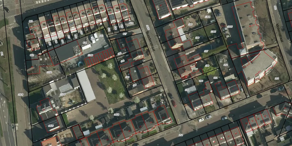 Gebruik de zoekbalk of klik op een perceel voor informatie over de adressen binnen dit perceel.