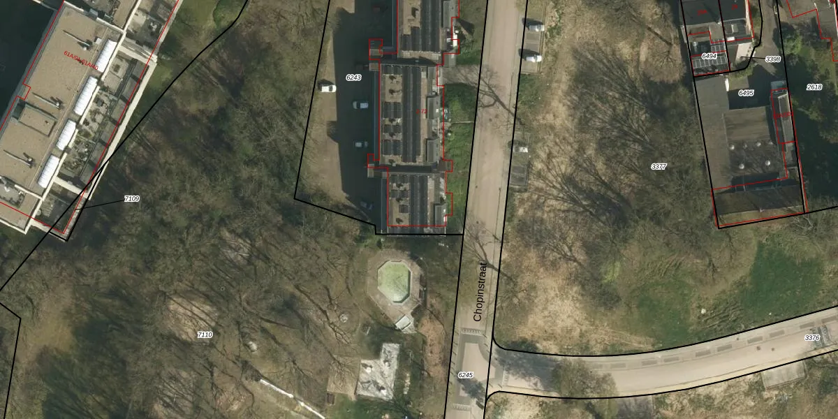 Het perceel waarop Chopinstraat 72 staat heeft een oppervlakte van 2550 m². Dit is een zeer groot perceel. De perceeloppervlakte wordt geregistreerd door het Kadaster. Gedetailleerde informatie over de maten van dit perceel kunt u vinden in het rapport Kadastrale kaart met maatvoering van Chopinstraat 72.