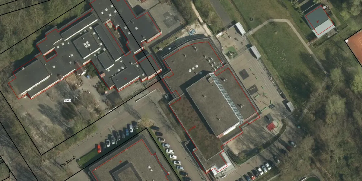 Het perceel waarop De Insel 23 staat heeft een oppervlakte van 9,5 ha. Dit is een zeer groot perceel. De perceeloppervlakte wordt geregistreerd door het Kadaster. Gedetailleerde informatie over de maten van dit perceel kunt u vinden in het rapport Kadastrale kaart met maatvoering van De Insel 23.