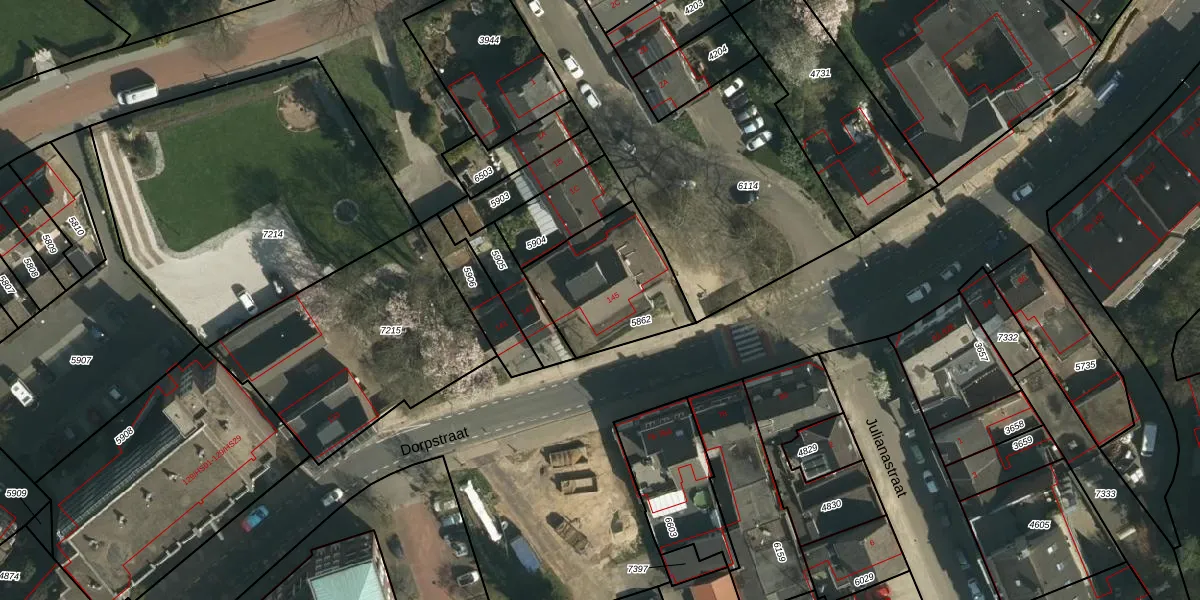 Dorpstraat 145 is gelegen op kadastraal perceel BSM02A5862. Deze kadastrale aanduiding is uniek en wordt gebruikt door het Kadaster om eigendomsrechten en andere zakelijke rechten vast te leggen. Het perceel maakt onderdeel uit van de kadastrale gemeente Brunssum.