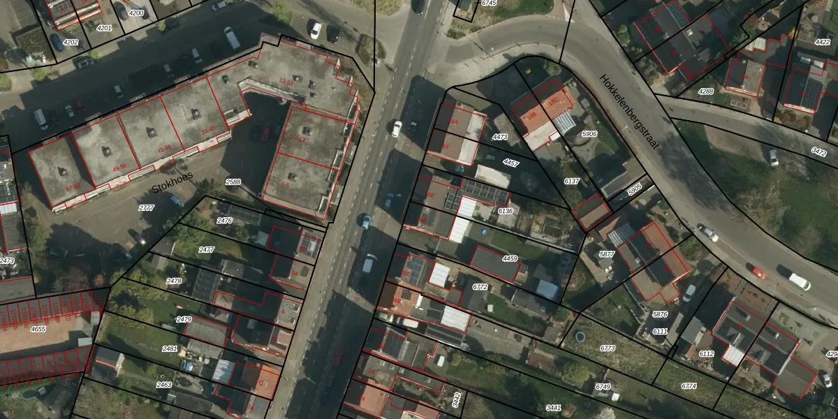 Gebruik de zoekbalk of klik op een perceel voor informatie over de adressen binnen dit perceel.