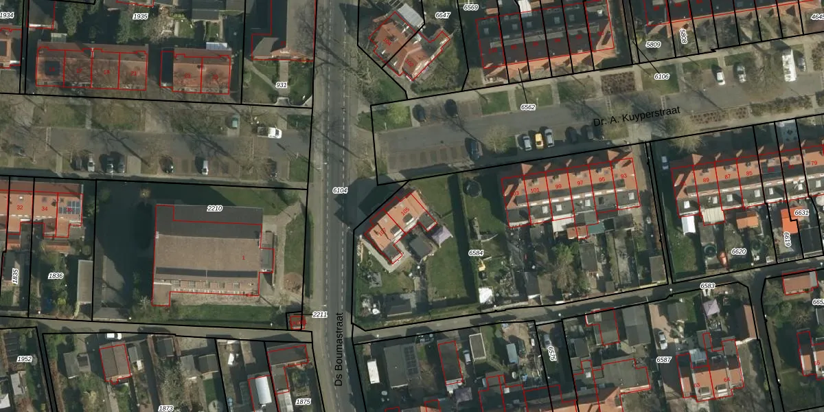 Dr. A. Kuyperstraat 105 is gelegen op kadastraal perceel BSM02C6584. Deze kadastrale aanduiding is uniek en wordt gebruikt door het Kadaster om eigendomsrechten en andere zakelijke rechten vast te leggen. Het perceel maakt onderdeel uit van de kadastrale gemeente Brunssum.