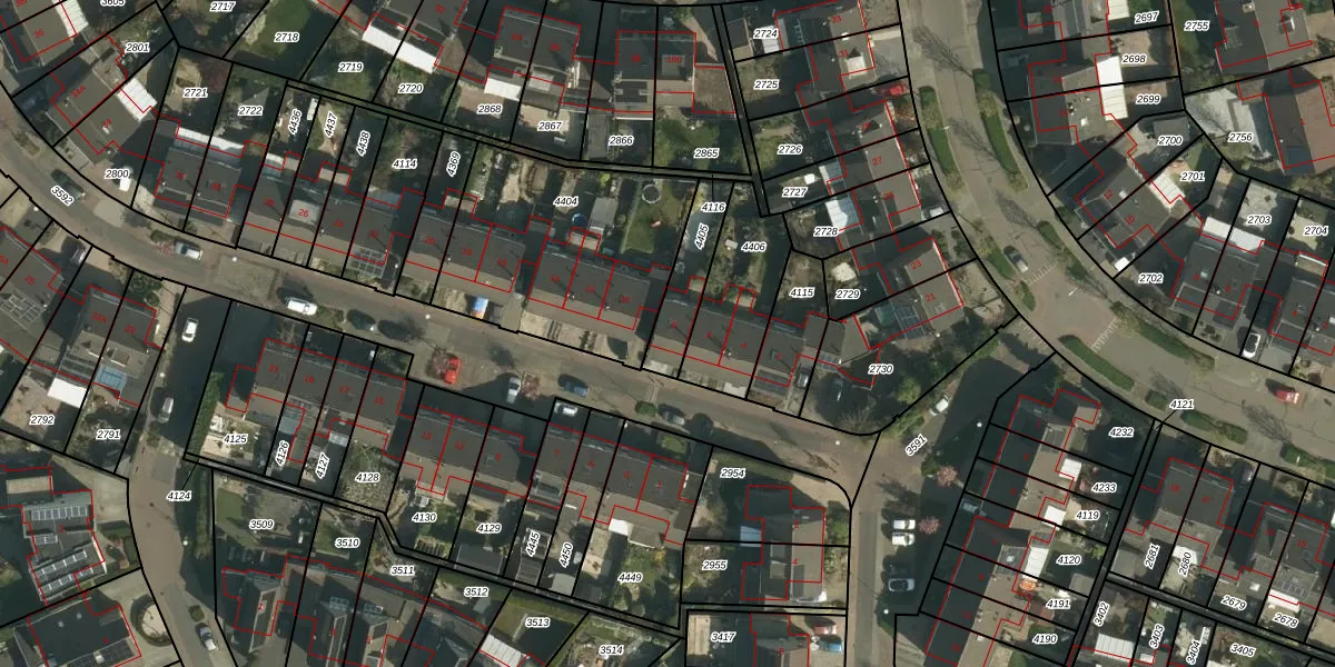 Gebruik de zoekbalk of klik op een perceel voor informatie over de adressen binnen dit perceel.