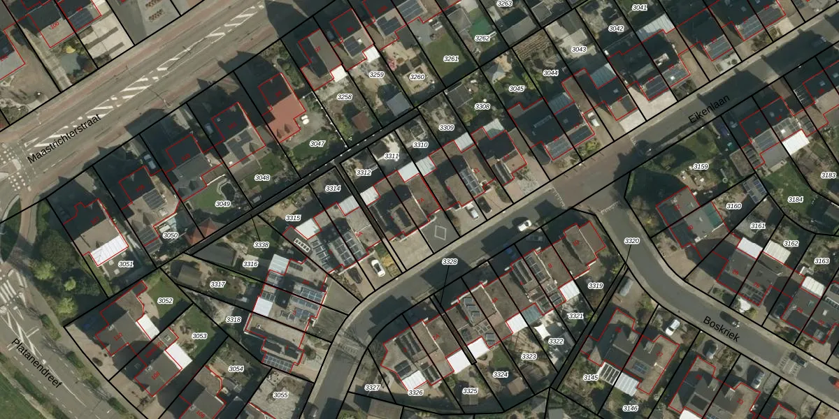 Gebruik de zoekbalk of klik op een perceel voor informatie over de adressen binnen dit perceel.
