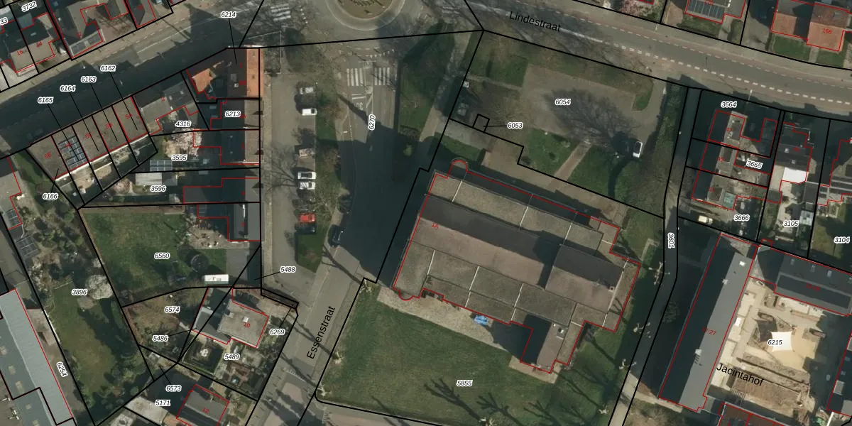 Het perceel waarop Essenstraat 1-A staat heeft een oppervlakte van 4080 m². Dit is een zeer groot perceel. De perceeloppervlakte wordt geregistreerd door het Kadaster. Gedetailleerde informatie over de maten van dit perceel kunt u vinden in het rapport Kadastrale kaart met maatvoering van Essenstraat 1-A.