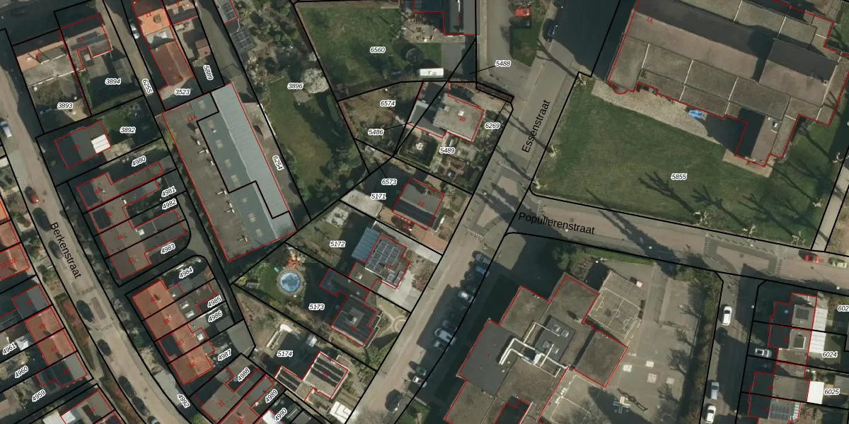 Gebruik de zoekbalk of klik op een perceel voor informatie over de adressen binnen dit perceel.