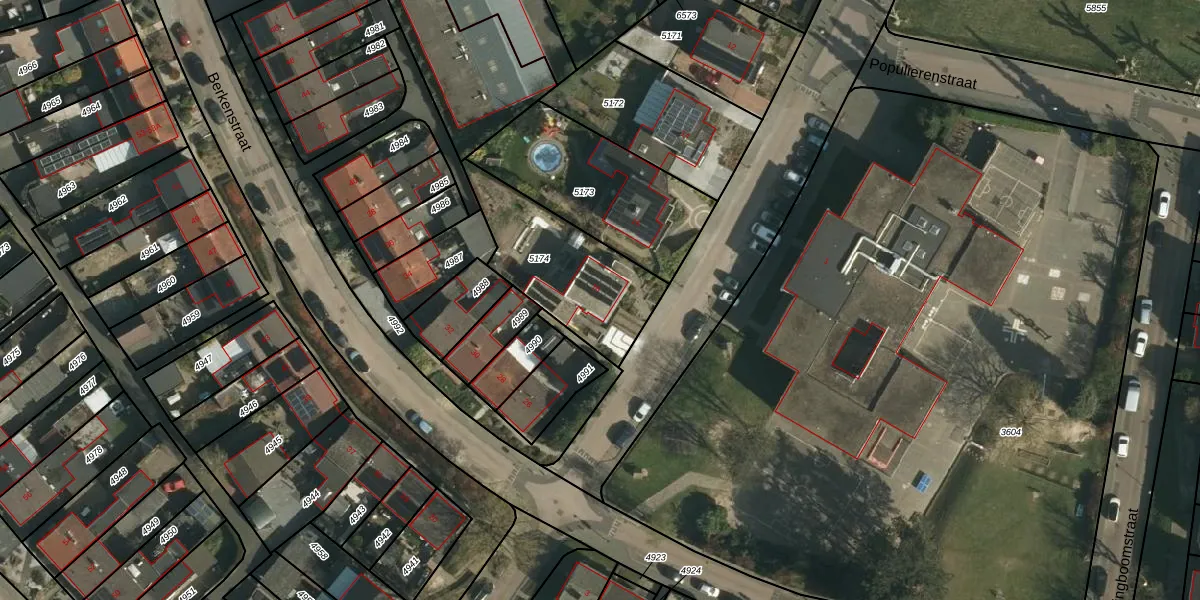 Gebruik de zoekbalk of klik op een perceel voor informatie over de adressen binnen dit perceel.