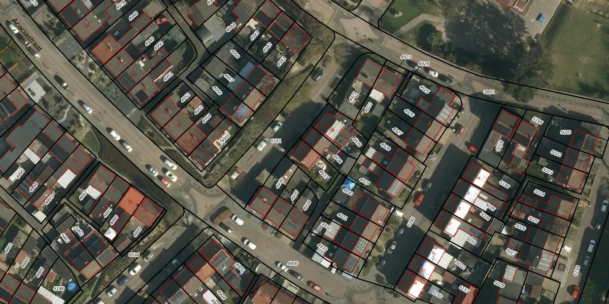 Gebruik de zoekbalk of klik op een perceel voor informatie over de adressen binnen dit perceel.