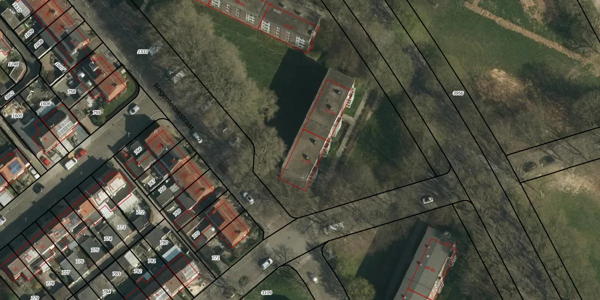 Het perceel waarop Europalaan 9 staat heeft een oppervlakte van 1,0 ha. Dit is een zeer groot perceel. De perceeloppervlakte wordt geregistreerd door het Kadaster. Gedetailleerde informatie over de maten van dit perceel kunt u vinden in het rapport Kadastrale kaart met maatvoering van Europalaan 9.