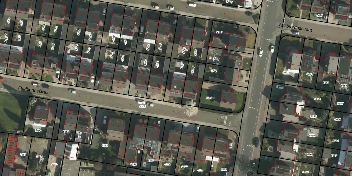 Het perceel waarop Floribertusstraat 4 staat heeft een oppervlakte van 251 m². Dit is een middelgroot perceel. De perceeloppervlakte wordt geregistreerd door het Kadaster. Gedetailleerde informatie over de maten van dit perceel kunt u vinden in het rapport Kadastrale kaart met maatvoering van Floribertusstraat 4.