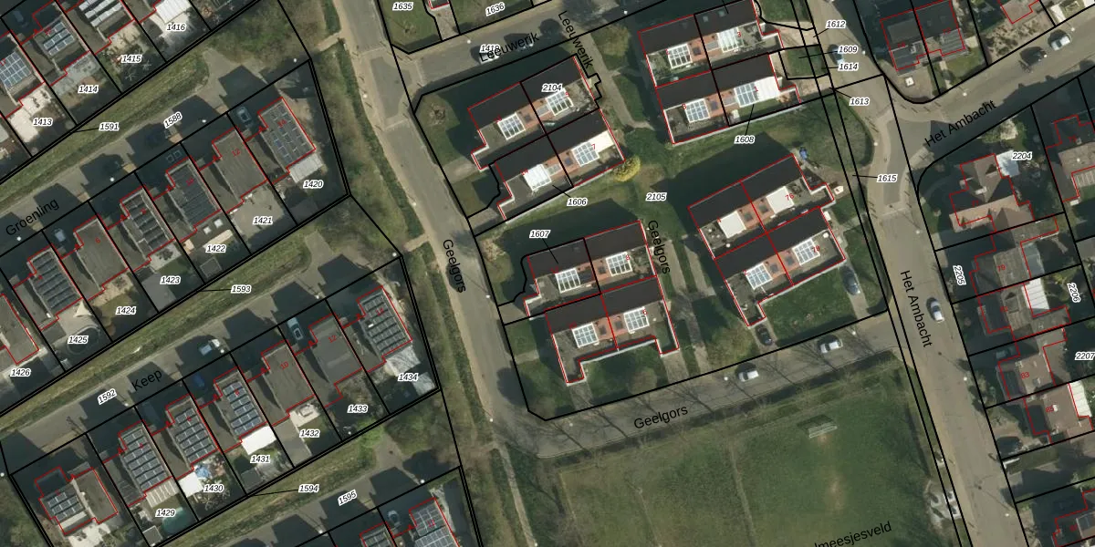 Gebruik de zoekbalk of klik op een perceel voor informatie over de adressen binnen dit perceel.