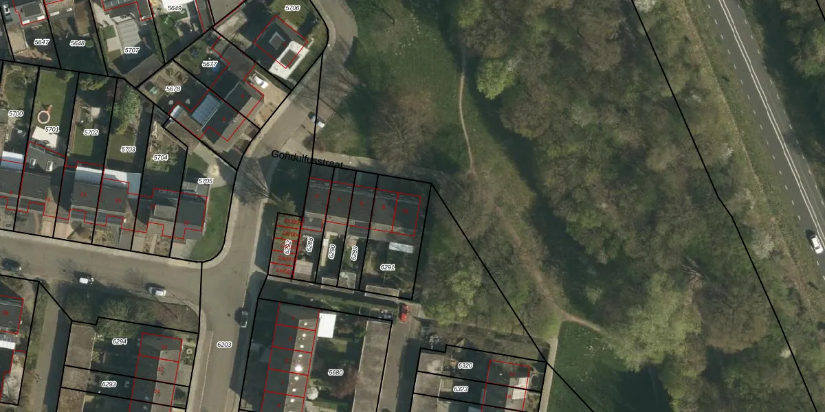 Gondulfusstraat 10 is gelegen op kadastraal perceel BSM02C6291. Deze kadastrale aanduiding is uniek en wordt gebruikt door het Kadaster om eigendomsrechten en andere zakelijke rechten vast te leggen. Het perceel maakt onderdeel uit van de kadastrale gemeente Brunssum.