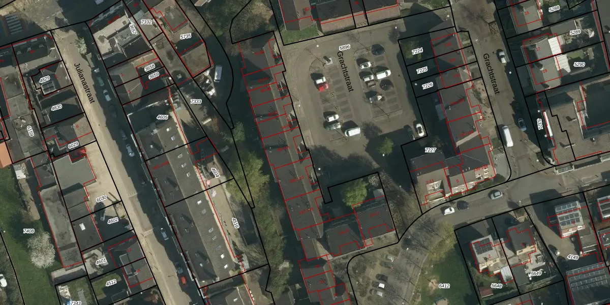 Grachtstraat 104 is gelegen op kadastraal perceel BSM02A5893. Deze kadastrale aanduiding is uniek en wordt gebruikt door het Kadaster om eigendomsrechten en andere zakelijke rechten vast te leggen. Het perceel maakt onderdeel uit van de kadastrale gemeente Brunssum.