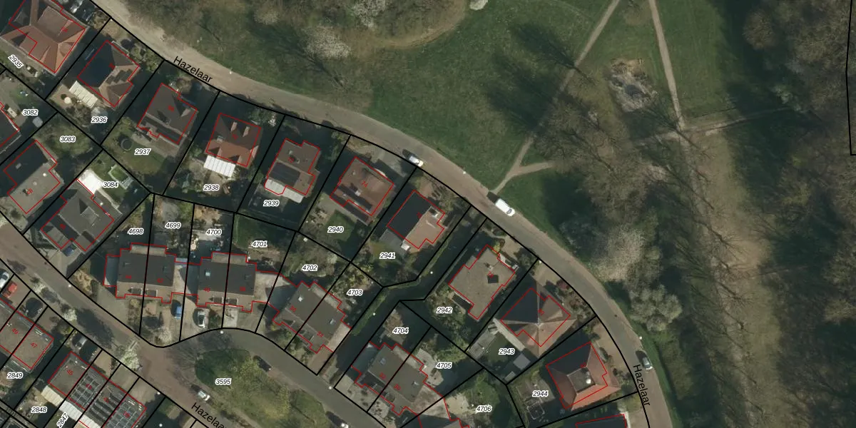 Het perceel waarop Hazelaar 76 staat heeft een oppervlakte van 401 m². Dit is een groot perceel. De perceeloppervlakte wordt geregistreerd door het Kadaster. Gedetailleerde informatie over de maten van dit perceel kunt u vinden in het rapport Kadastrale kaart met maatvoering van Hazelaar 76.