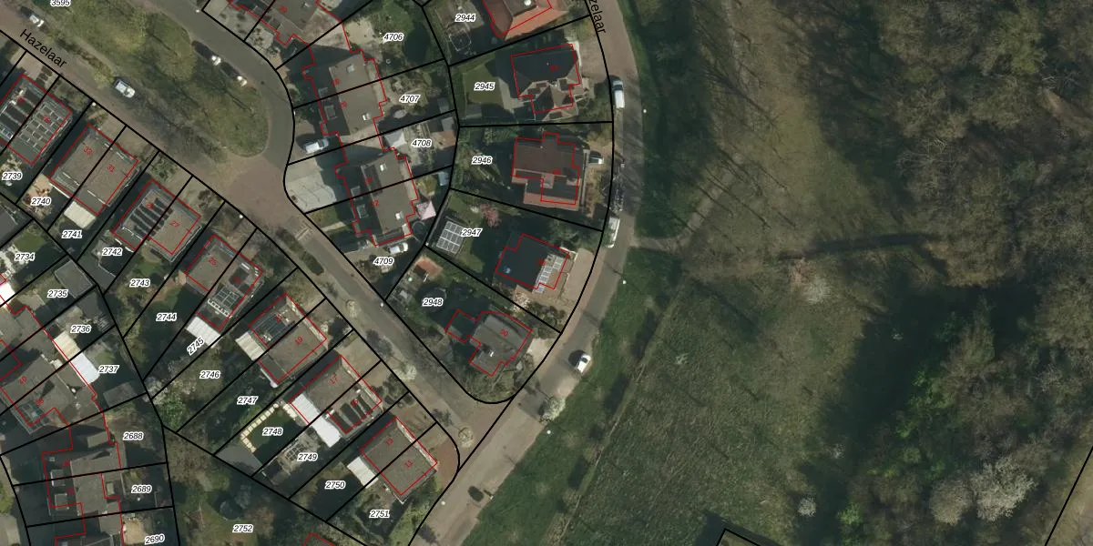 Het perceel waarop Hazelaar 88 staat heeft een oppervlakte van 472 m². Dit is een groot perceel. De perceeloppervlakte wordt geregistreerd door het Kadaster. Gedetailleerde informatie over de maten van dit perceel kunt u vinden in het rapport Kadastrale kaart met maatvoering van Hazelaar 88.
