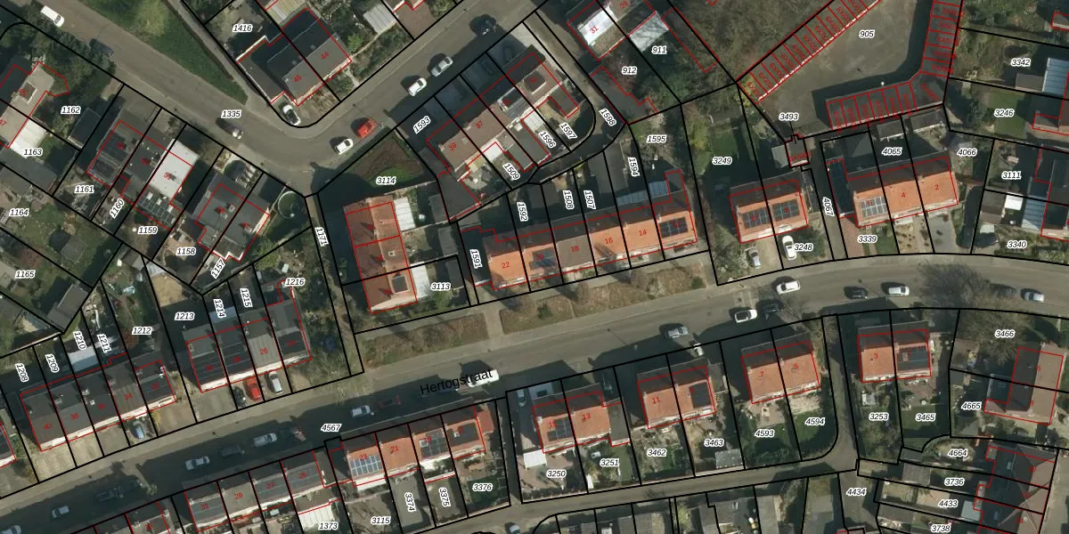 Gebruik de zoekbalk of klik op een perceel voor informatie over de adressen binnen dit perceel.
