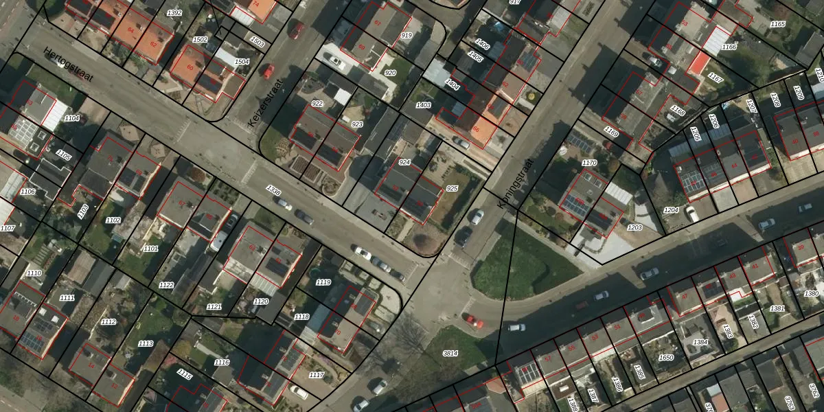 Gebruik de zoekbalk of klik op een perceel voor informatie over de adressen binnen dit perceel.