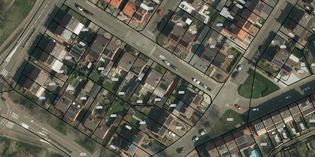 Gebruik de zoekbalk of klik op een perceel voor informatie over de adressen binnen dit perceel.