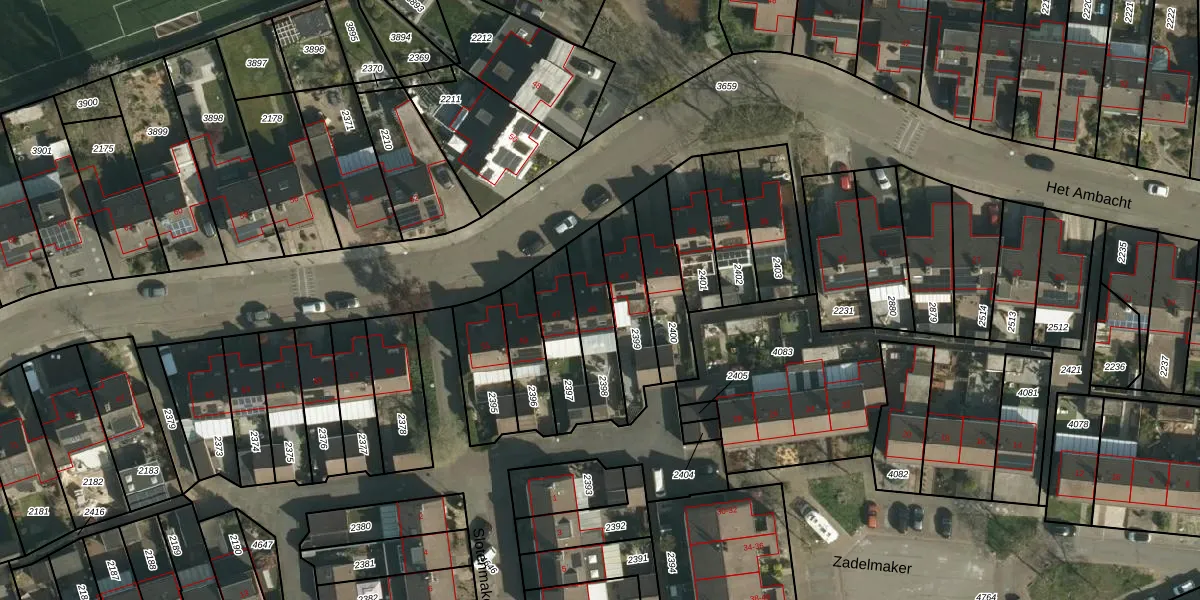 Gebruik de zoekbalk of klik op een perceel voor informatie over de adressen binnen dit perceel.