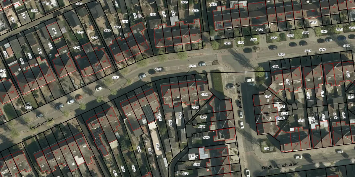 Het perceel waarop Heufkestraat 27 staat heeft een oppervlakte van 196 m². Dit is een middelgroot perceel. De perceeloppervlakte wordt geregistreerd door het Kadaster. Gedetailleerde informatie over de maten van dit perceel kunt u vinden in het rapport Kadastrale kaart met maatvoering van Heufkestraat 27.