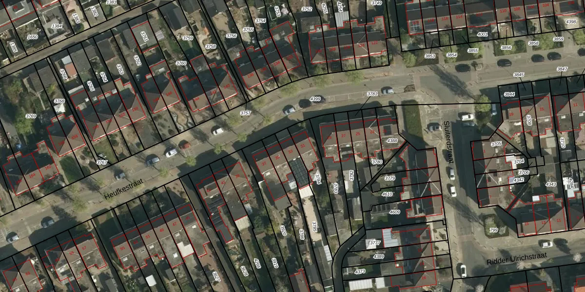 Het perceel waarop Heufkestraat 33 staat heeft een oppervlakte van 310 m². Dit is een groot perceel. De perceeloppervlakte wordt geregistreerd door het Kadaster. Gedetailleerde informatie over de maten van dit perceel kunt u vinden in het rapport Kadastrale kaart met maatvoering van Heufkestraat 33.