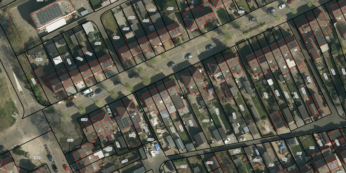 Gebruik de zoekbalk of klik op een perceel voor informatie over de adressen binnen dit perceel.