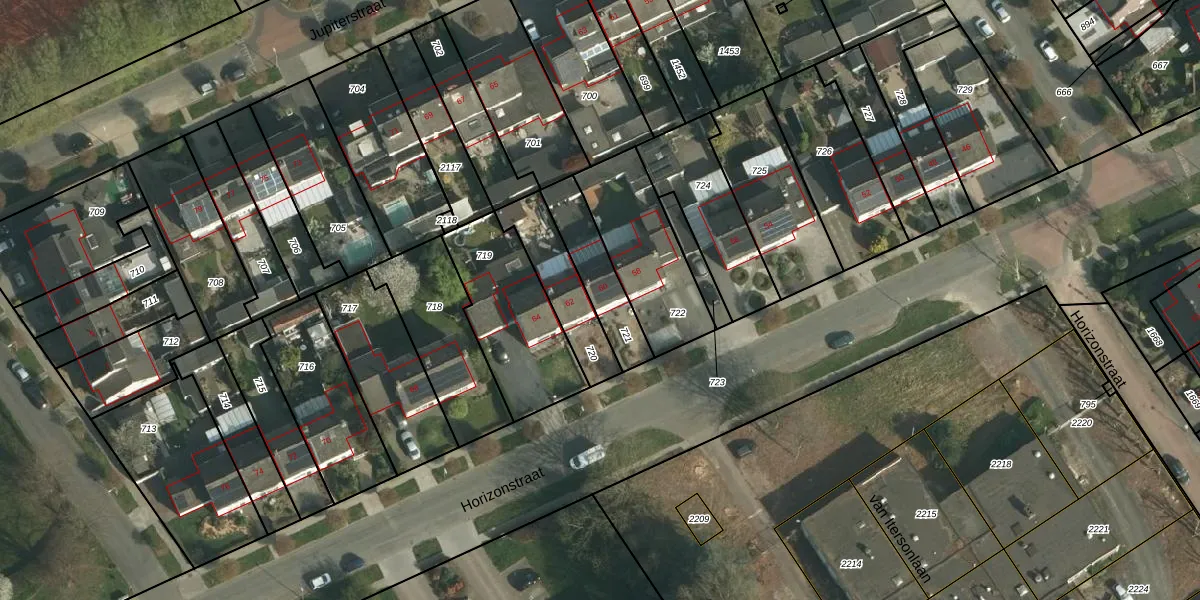Gebruik de zoekbalk of klik op een perceel voor informatie over de adressen binnen dit perceel.