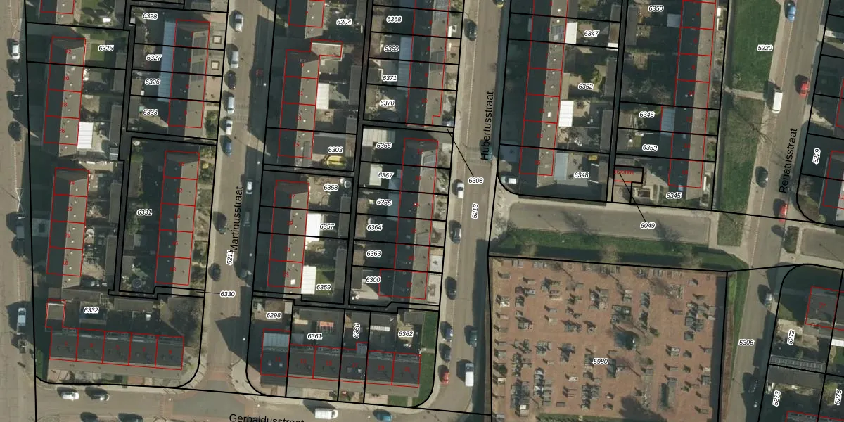 Gebruik de zoekbalk of klik op een perceel voor informatie over de adressen binnen dit perceel.