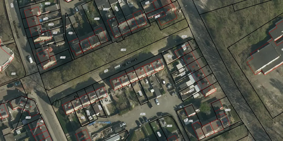 Het perceel waarop Ingelsbroek 16 staat heeft een oppervlakte van 5331 m². Dit is een zeer groot perceel. De perceeloppervlakte wordt geregistreerd door het Kadaster. Gedetailleerde informatie over de maten van dit perceel kunt u vinden in het rapport Kadastrale kaart met maatvoering van Ingelsbroek 16.