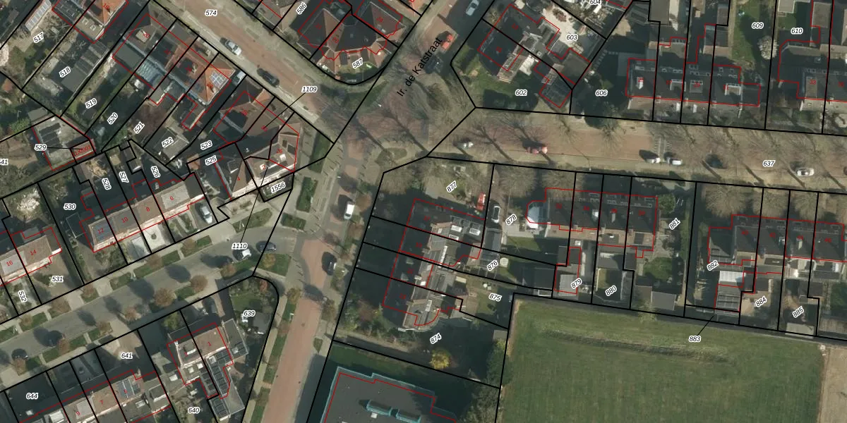 Gebruik de zoekbalk of klik op een perceel voor informatie over de adressen binnen dit perceel.