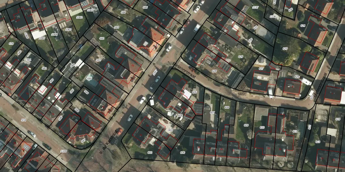 Gebruik de zoekbalk of klik op een perceel voor informatie over de adressen binnen dit perceel.