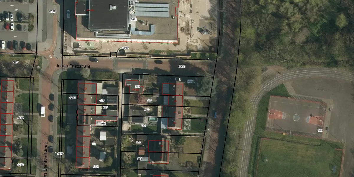 Het perceel waarop Johan-Frisostraat 2 staat heeft een oppervlakte van 558 m². Dit is een groot perceel. De perceeloppervlakte wordt geregistreerd door het Kadaster. Gedetailleerde informatie over de maten van dit perceel kunt u vinden in het rapport Kadastrale kaart met maatvoering van Johan-Frisostraat 2.