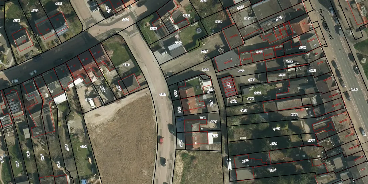 Gebruik de zoekbalk of klik op een perceel voor informatie over de adressen binnen dit perceel.