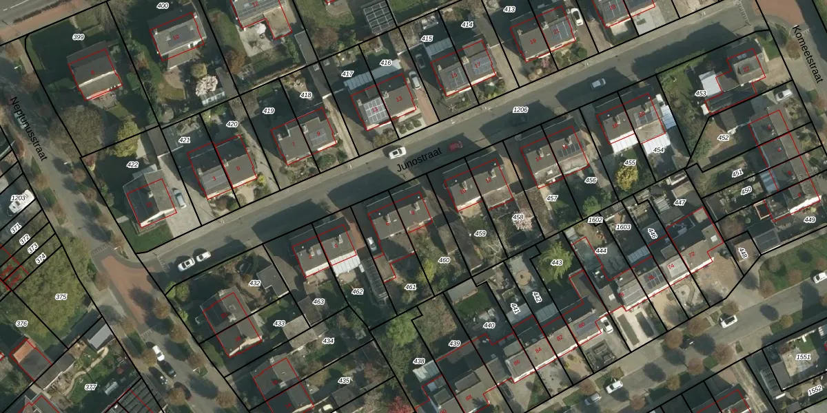 Het perceel waarop Junostraat 8 staat heeft een oppervlakte van 281 m². Dit is een middelgroot perceel. De perceeloppervlakte wordt geregistreerd door het Kadaster. Gedetailleerde informatie over de maten van dit perceel kunt u vinden in het rapport Kadastrale kaart met maatvoering van Junostraat 8.