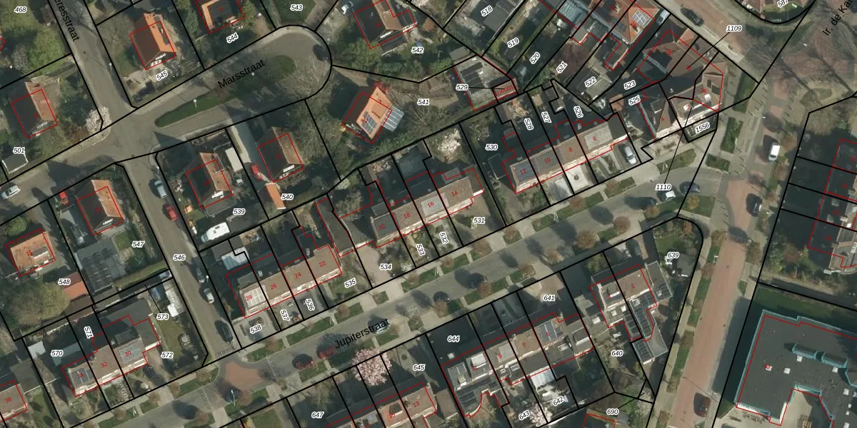 Het perceel waarop Jupiterstraat 16 staat heeft een oppervlakte van 173 m². Dit is een middelgroot perceel. De perceeloppervlakte wordt geregistreerd door het Kadaster. Gedetailleerde informatie over de maten van dit perceel kunt u vinden in het rapport Kadastrale kaart met maatvoering van Jupiterstraat 16.